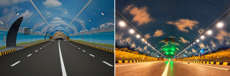 سيتحول الجزء الداخلي من النفق إلى "ممر فني من الضوء والظل" يعرض مناظر جبال تيانشان، محاكياً بيئة قيادة واسعة ومشرقة وواقعية "خارج النفق". يُسهم تصميم المشهد الغامر هذا في تخفيف إرهاق القيادة.