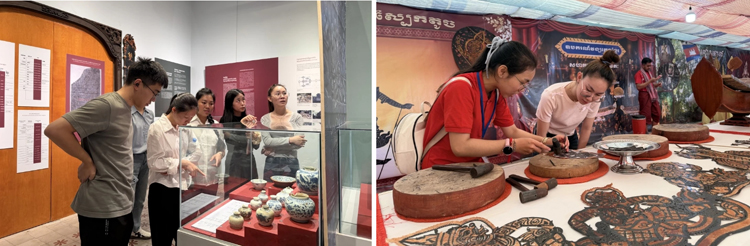 أما في كمبوديا، فقد زار الموظفون معرضا حضاريا صينيا-كمبوديا، حيث تجوّلوا بين المعروضات من الخزف الصيني الأزرق والأبيض إلى آثار أنغكور التاريخية، وتوقفوا أمام كل قطعة للاستماع إلى التقديم والشرح وتبادل الآراء